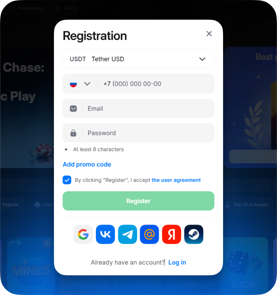 11,000+ slots and games: roulette, Aviator, JetX, and hits.